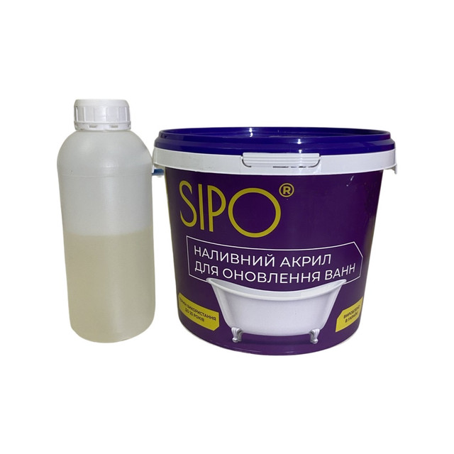Наливний акрил від ТМ Sipo® використовується для самостійної реставрації ванн в побутових умовах. Акрил наноситься на поверхню ванн методом наливу, звідси і назва "Наливний акрил". Виробництвом та постачанням акрилу Sipo® (Сіпо®) в Україні займається Українська торгова марка "Sipo™". При виробництві даного акрилу для реставрації ванн застосовується сировину провідних, європейських компаній Basf, Du Pont, Dow. "Sipo®" швидко і впевнено завоював Український ринок з 2017 року.