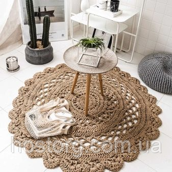 Із джутового шпагату можна зробити привабливий килимок, оформлений за власним бажанням.