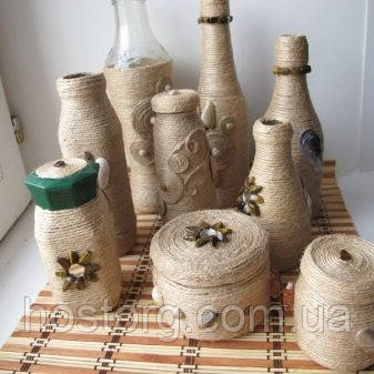 Джутові нитки та шпагати доволі успішно використовують у рукоділлі, а саме в плетінні елементів декору. В інтер'єрі саморобні предмети з рослинного волокна мають дуже оригінальний вигляд.